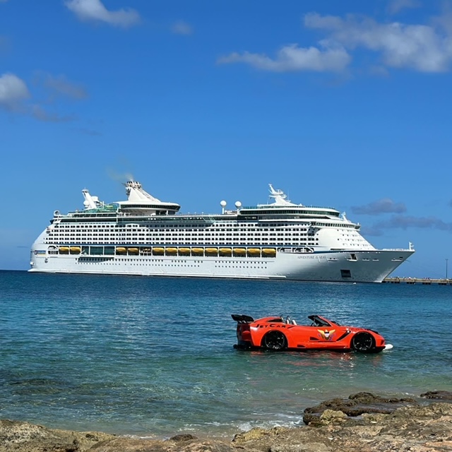 What do you get when you cross a Jet Ski and a Chevy Corvette? Whatever you get, it sure sounds like a whole lot of fun! But wait, is this a real thing? Did I just see a cool-looking orange Corvette zipping around ON the water off the shore of Frederiksted? Do I need to get my eyes checked? Nope, my eyes are fine…Welcome to one of St Croix’s newest water sports attractions by VI Exotic Water Sports!