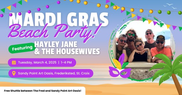 This three-day event not only celebrates the musical talents of Hayley Jane & The Housewives but also inaugurates the Sandy Point Art Oasis as a destination for art, music, and community gatherings on St. Croix. Don’t miss this opportunity to be part of this moment blending culture, creativity, and island spirit.