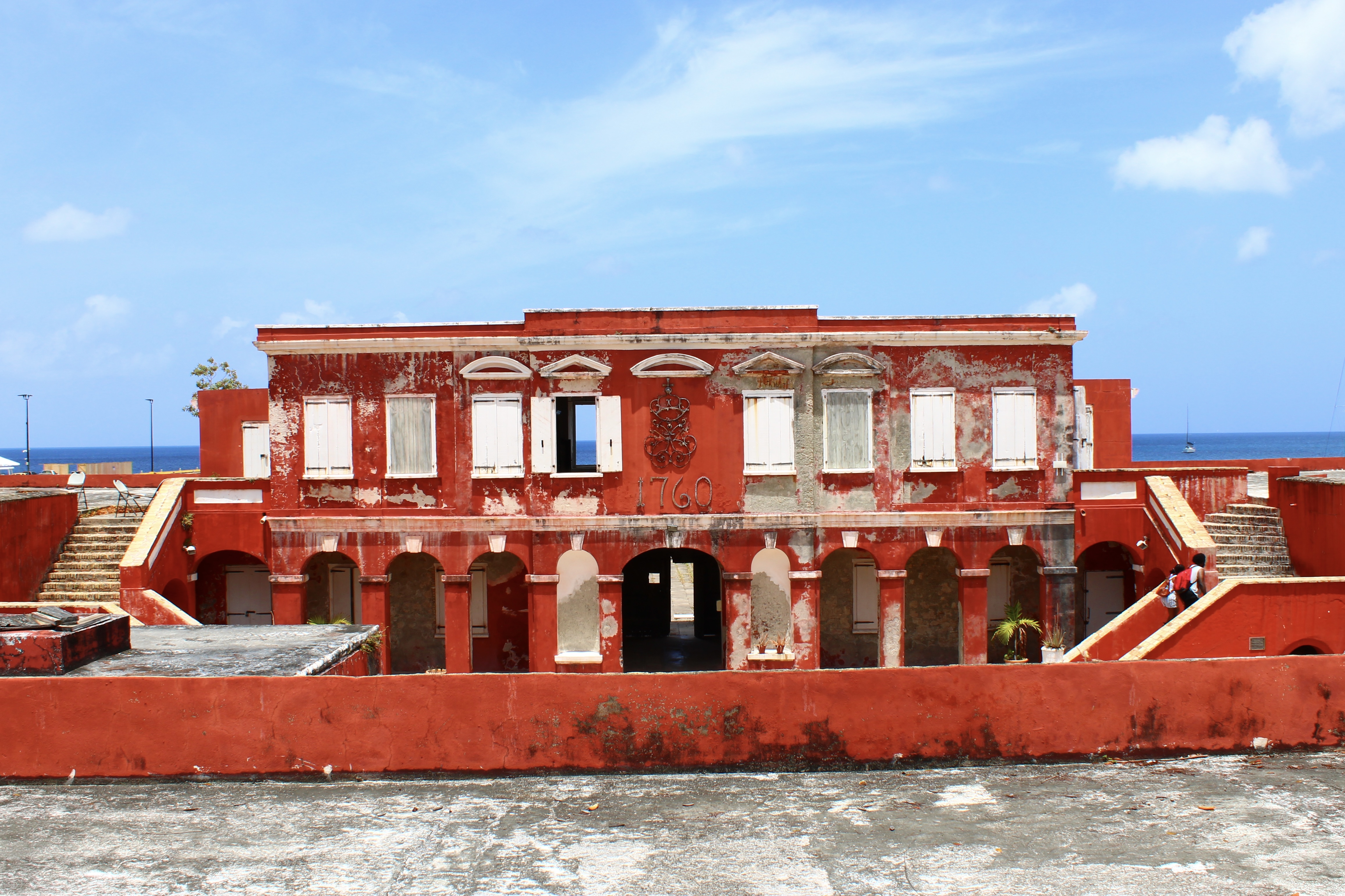 Zane and I had the opportunity of visiting Fort Frederik, or Frederiksfort, early this morning. As new travelers to St. Croix, we were eager to learn more about the island and its history. A mid-eighteenth-century fortress seemed the perfect place to submerse ourselves in St. Croix’s story. As we walked over to the fort, its blood red paint and massive cannons facing the ocean drew us in. We knew we were in for an adventure before we even made it through the door.