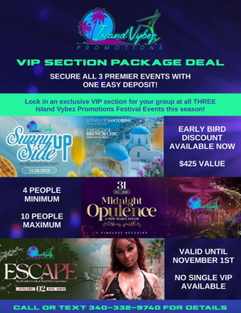 In the midst of the festival week, on of the Virgin Islands premier event organizers Island Vybez Promotions is returning with three headline events that should be some of the biggest parties on island of the year.