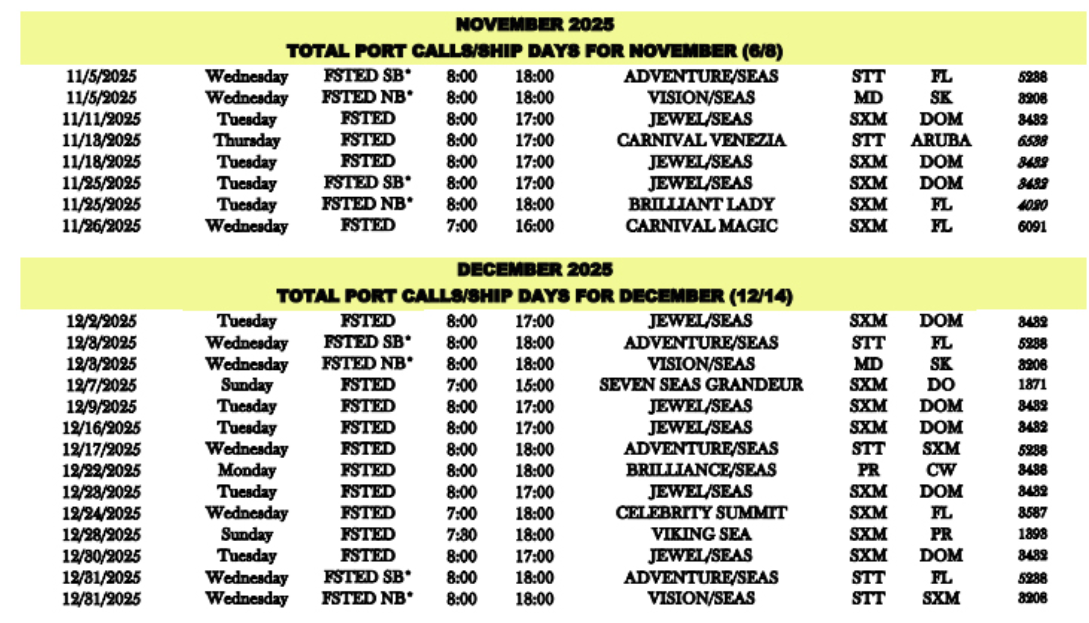 (Courtesy of the VI Port Authority – times are subject to change.)