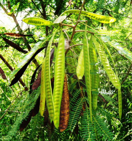 The Tan-Tan offers numerous benefits, including its utility as a food source, medicinal properties, and its use in skin treatments. This tree typically reaches a height of around 18 feet and boasts a moderately slender trunk that can be easily encircled by your palms. While it is susceptible to being felled with a machete due to its thin trunk, its roots are notably robust and challenging to uproot from the ground. The branches of the Tan-Tan are broad, adorned with green stems and slender, oval-shaped leaves. These branches also bear elongated pods that are green in color and contain multiple seeds.